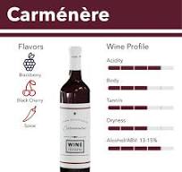 Carmenere is known for its rich berry flavors with notes of spice and herbs.